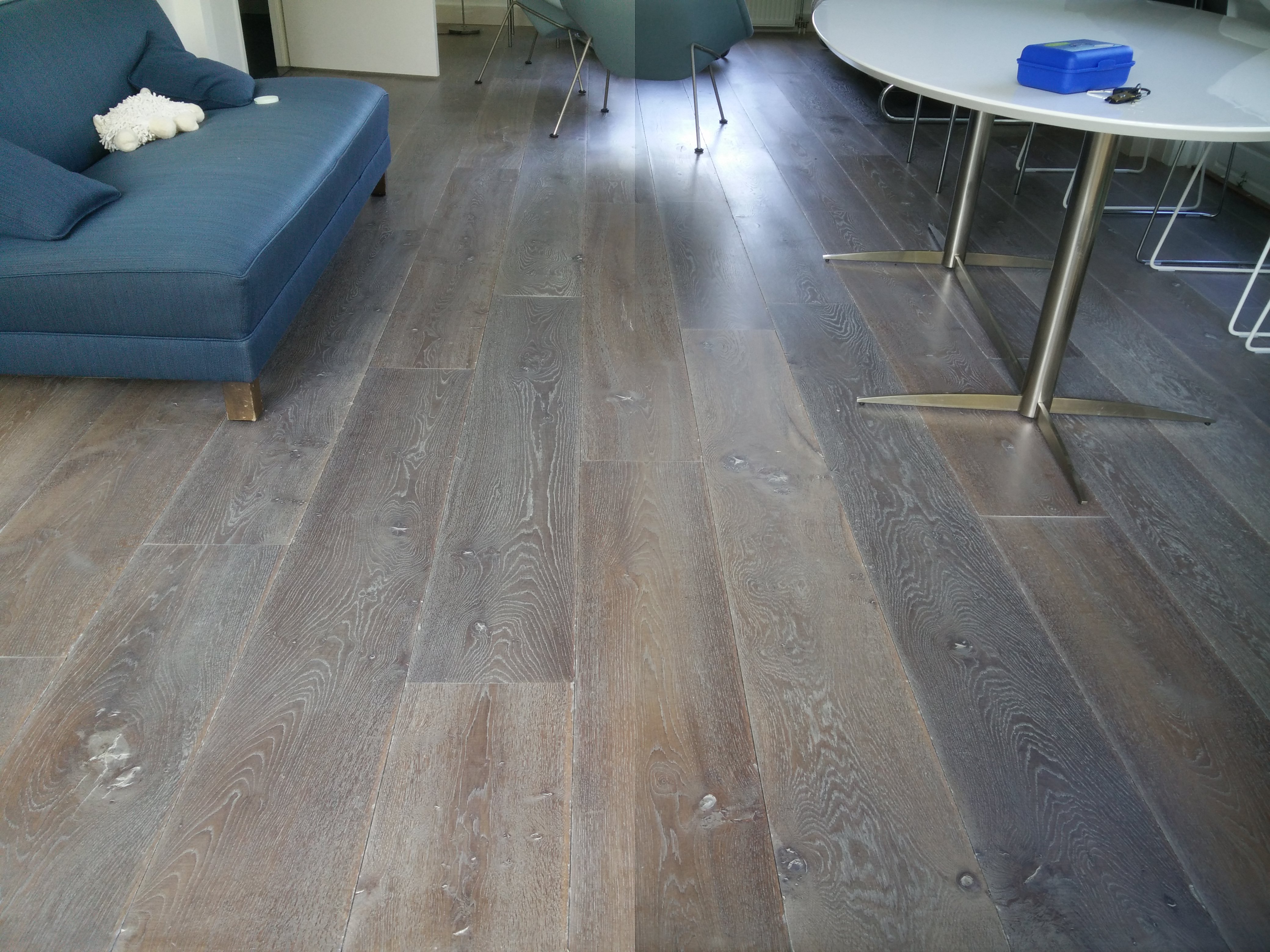 Reparatie bestaande visgraat. Er zat een grote loogplek (donkere vlek) in.